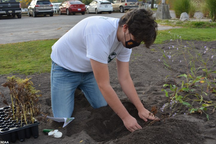 The agency notes that students from Au Gres-Sims High School worked with Michigan Sea Grant to secure funding to install a native plant bioswale at Riverside Park in Au Gres.